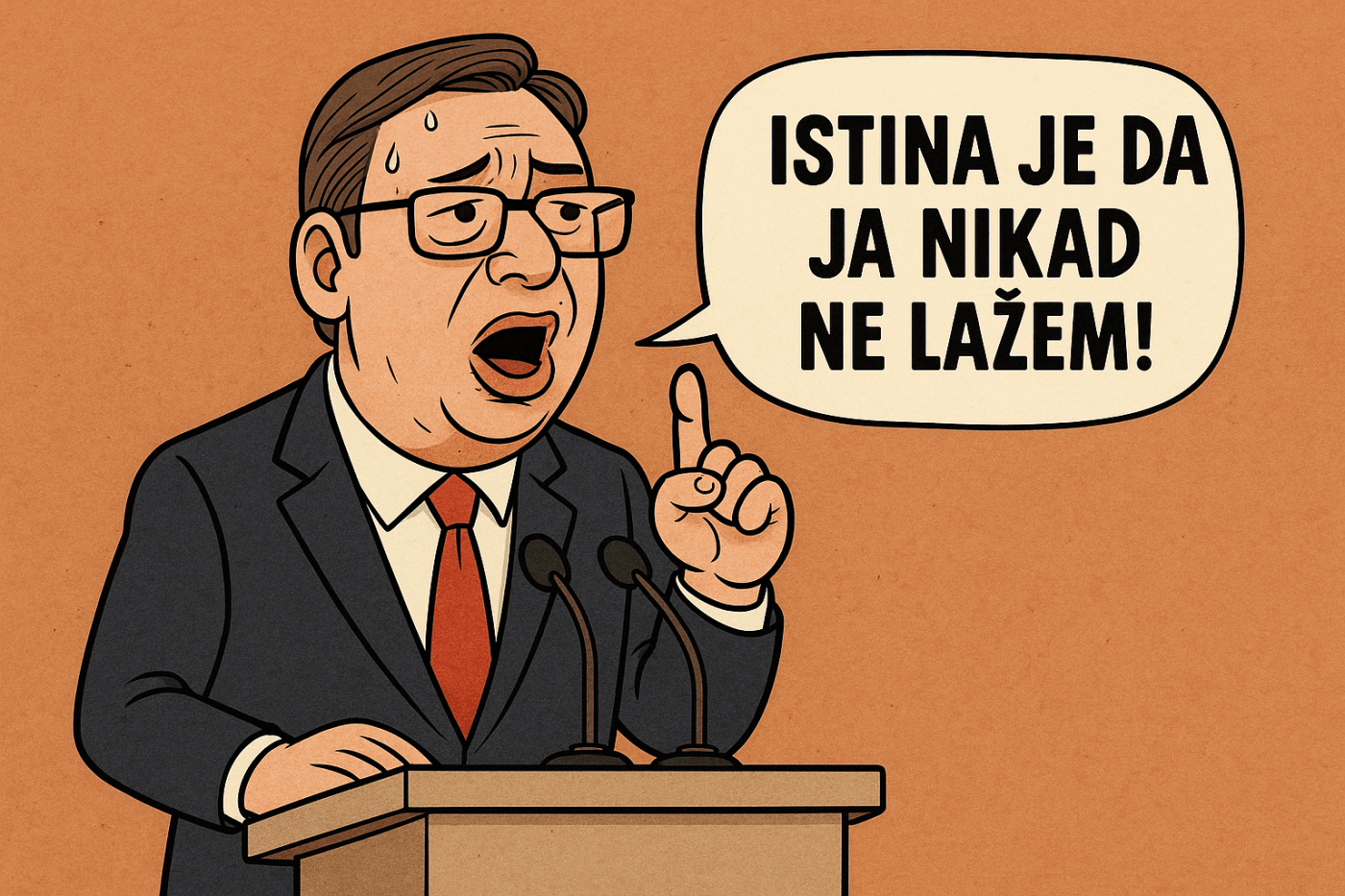On u ovom govoru nije političar – on je mešavina Nostradamusa, dispečera i vođe izviđača u jednoj osobi. Sve zna, sve vidi, sve rešava. A kad ne zna – zna ko zna. A kad ni to ne zna – onda su strane službe krive.